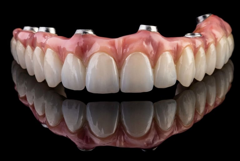 Prótese Protocolo: é uma prótese fixa presa sobre implantes — ideal para quem perdeu todos os dentes e quer voltar a sorrir, mastigar e falar com confiança.